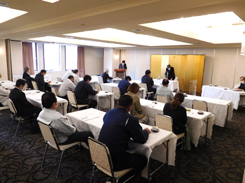 | 去る6月24日、岳下住民センターにおいて第4回通常総会を開催し組合員37名が出席しました。 昨年、役員改選期でありましたが、新型コロナウイルス感染拡大防止のため書面議決とし役員改選を実施しなかったことから今年度は一堂に会して実施し、時間短縮のため来賓は招待せず、広い会場で出席者同士の間隔をとるなど感染対策を十分にとりながら開催しました。 尾形代表理事理事長から「令和2年度の事業は除染関連業務支援、農林業系廃棄物等処理業務、令和元年度10月豪雨被災箇所修繕業務の三業務を中心に組合員皆様の協力のおかげて順調に業務執行できました。また、令和3年度はそれぞれの業務完了に伴い新たな共同受注、共同施工を構築していかなければならない。」との挨拶がありました。 議長に、神野聴文氏((株)カミノグリーンマネジメント)を選出し、議事に入りました。議案第3号定款の一部変更の件では、定款第34条が本組合に顧問及び相談役を置くことができると変更になり、役員経験があり組合の組織運営に生かすため前専務理事の安斎一男氏を相談役に委嘱することとなりました。 議案第7号役員選挙の件では、指名推選制の方法によることとし、選考委員会から指名のあった理事12名監事2名を選出しました。その後行われた理事会の互選により、理事長に尾形定蔵氏、副理事長に渡邊英世氏、斎藤昭一氏、本田幸一氏、専務理事に星盛秋氏を選出いたしました。(新役員については、役員一覧をご覧ください。) 議案第1号から第7号まで審議し全て原案通り承認可決となり終了いたしました。 |